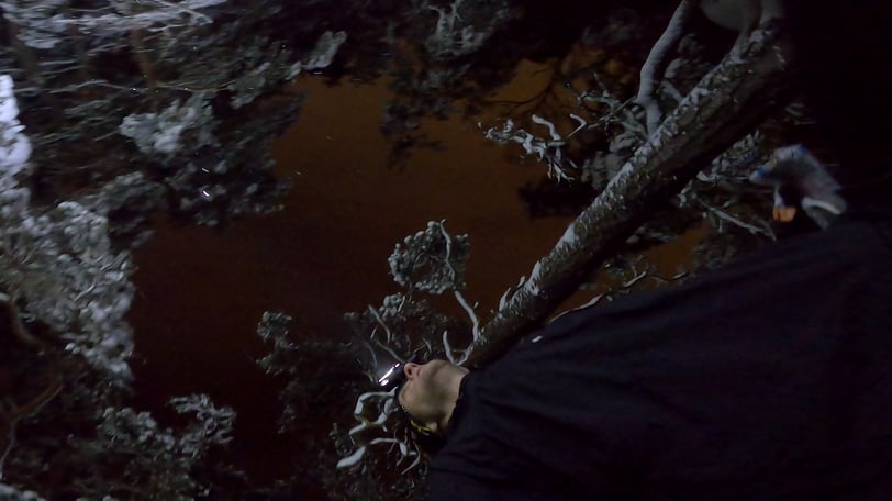 In the end of the course I put on my big headlight to see the white snow and whirling snowflakes more vividly, and to capture it better with the camera.