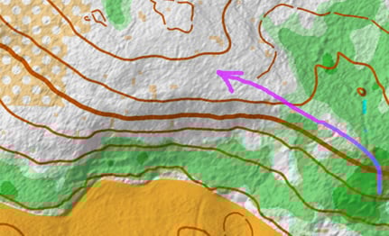Then I had to fight through some "Fight" terrain ("410 Vegetation: Fight" according to the specification ISOM 2017-2) to get to some more runnable roads and paths, this was my favourite of the day - perfect softness through the blueberry bushes!